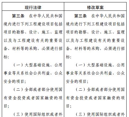 關(guān)于修改《招標(biāo)投標(biāo)法》《招標(biāo)投標(biāo)法實施條例》的決定(征求意見稿)和《招標(biāo)投標(biāo)法》《招標(biāo)投標(biāo)法實施條例》修改前后對照表的全文如下: