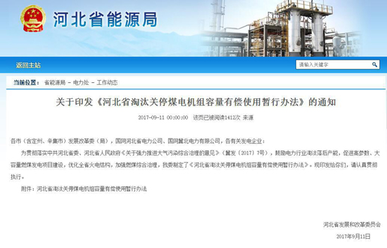 河北省淘汰關(guān)停煤電機組容量有償使用暫行辦法