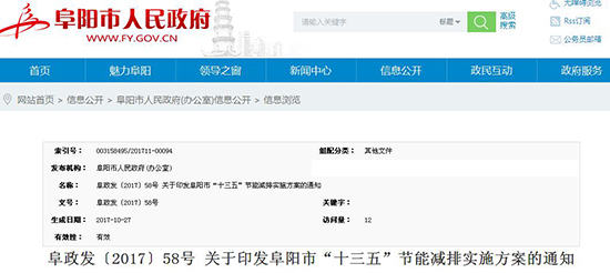 阜陽(yáng)市“十三五”節(jié)能減排實(shí)施方案