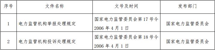 根據(jù)投訴舉報(bào)處理工作實(shí)際情況,并考慮到適用主體、調(diào)整對(duì)象均發(fā)生了變化,現(xiàn)決定宣布失效《電力監(jiān)管機(jī)構(gòu)舉報(bào)處理規(guī)定》(國(guó)家電力監(jiān)管委員會(huì)令第17號(hào))、《電力監(jiān)管機(jī)構(gòu)投訴處理規(guī)定》(國(guó)家電力監(jiān)管委員會(huì)令第18號(hào))。