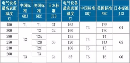 中、美、日爆炸性氣體溫度組別對(duì)照