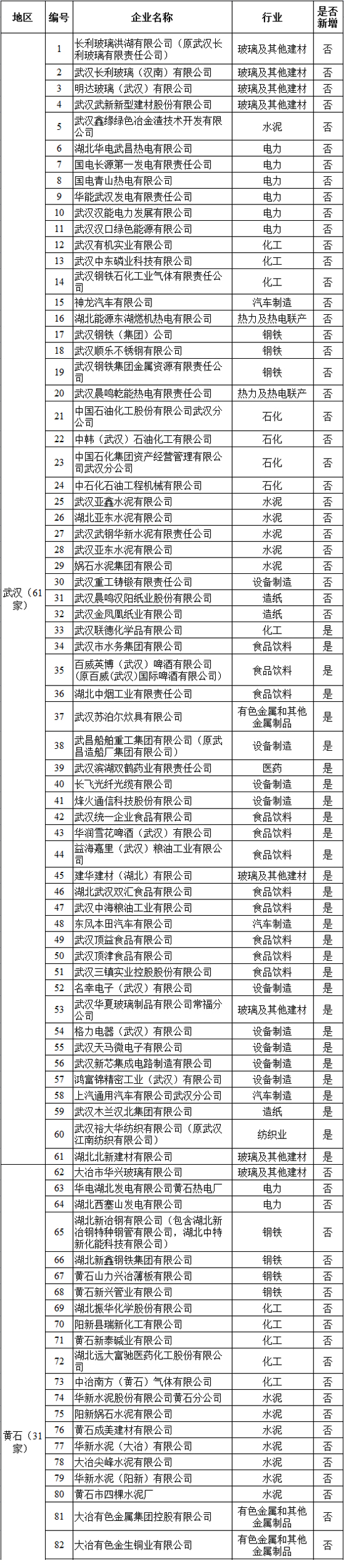 ? ? ? ? ?2、湖北省2017年納入碳排放配額管理企業(yè)清單