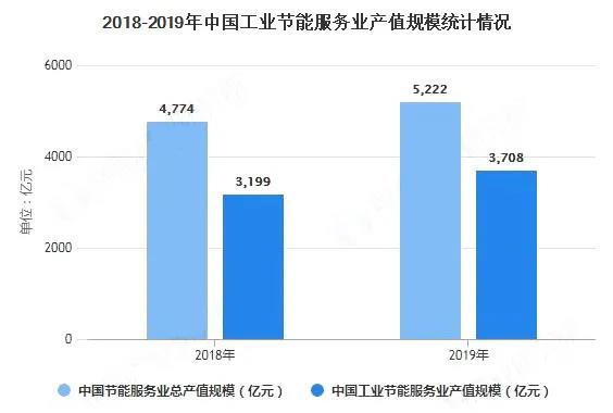 近年來,節(jié)能服務(wù)產(chǎn)業(yè)總產(chǎn)值不斷增長,呈逐年上漲趨勢。中國節(jié)能協(xié)會數(shù)據(jù)顯示,2019年我國節(jié)能服務(wù)產(chǎn)業(yè)總產(chǎn)值達5222億元,同比增長9.38%。根據(jù)《“十三五”節(jié)能環(huán)保產(chǎn)業(yè)發(fā)展規(guī)劃》,到2020年節(jié)能服務(wù)業(yè)總產(chǎn)值達到6000億元。我國節(jié)能服務(wù)行業(yè)潛力巨大。