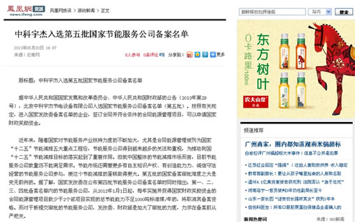 據(jù)中華人民共和國(guó)國(guó)家發(fā)展和改革委員會(huì)、中華人民共和國(guó)***的公告(2013年第29號(hào)),北京中科宇杰節(jié)電設(shè)備有限公司入選國(guó)家節(jié)能服務(wù)公司備案名單(第五批)。按照有關(guān)規(guī)定,進(jìn)入國(guó)家***備案名單的企業(yè),簽訂合同并符合條件的合同能源管理項(xiàng)目,可以申請(qǐng)國(guó)家財(cái)政獎(jiǎng)勵(lì)資金。