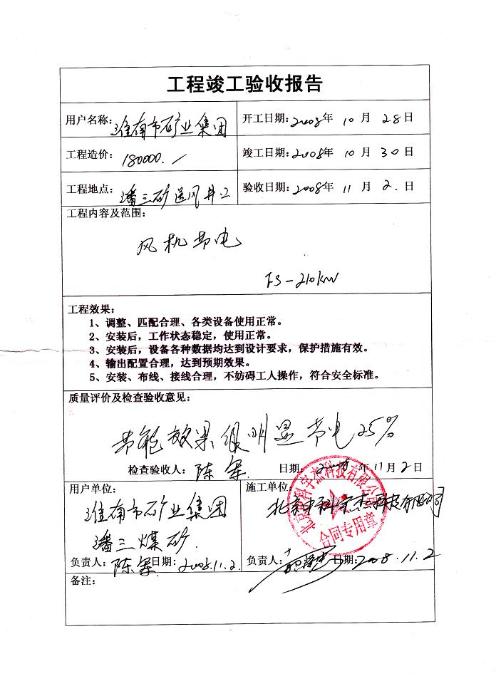 項(xiàng)目順利通過驗(yàn)收,結(jié)果表明,中科宇杰的智能風(fēng)機(jī)節(jié)電系統(tǒng)的節(jié)能效率達(dá)到30%,投資回報(bào)期不到兩年,超出了集團(tuán)領(lǐng)導(dǎo)的節(jié)能預(yù)期,取得了極大的經(jīng)濟(jì)效益和社會(huì)效益。